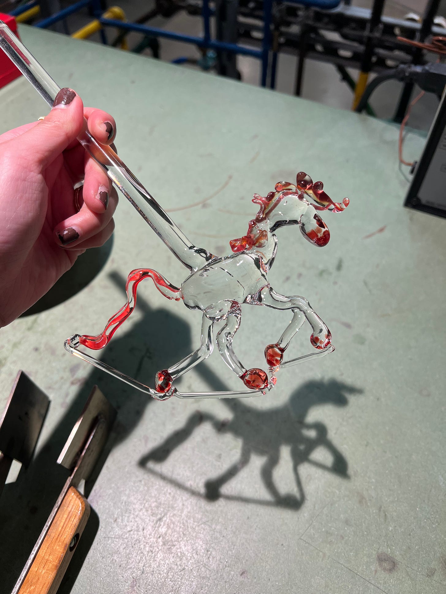 And finally, sharing a couple photos of the wonkiest fire horse that I made during my glass class. I started making this after only three class sessions and was extremely overambitious with it, but ultimately I like her and she’s very cute if you don’t look too closely. I’m excited to start experimenting more with what I’ve been intending to make with glass as a means to incorporate it into my larger practice. More on that soon!